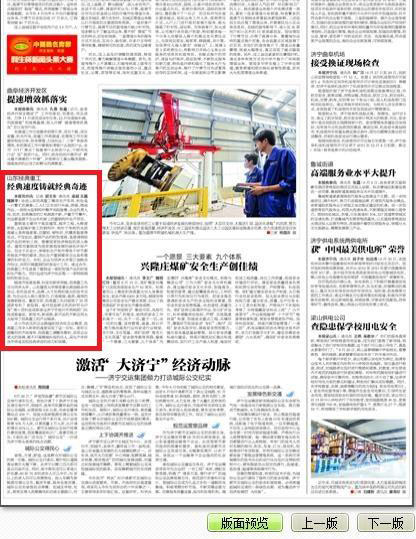 《濟(jì)寧日?qǐng)?bào)》報(bào)道經(jīng)典集團(tuán):經(jīng)典速度鑄就經(jīng)典傳奇
