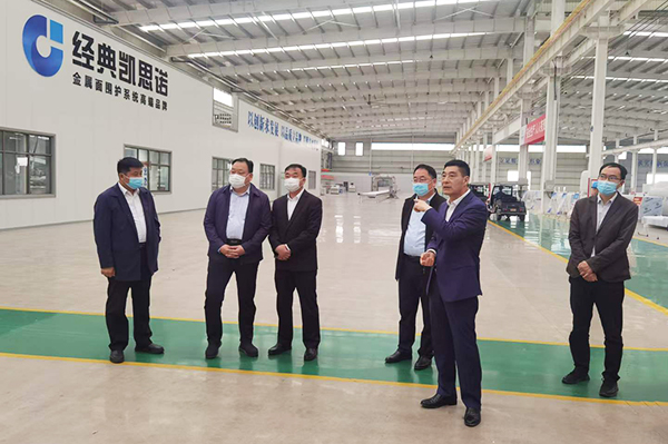 5月10日,濟寧市工業和信息化局局長屈耀武帶領制造強市指揮部領導一行到經典集團進行現場調研。兗州區委常委、副區長張銳,經典集團董事長苗樹文等陪同調研。