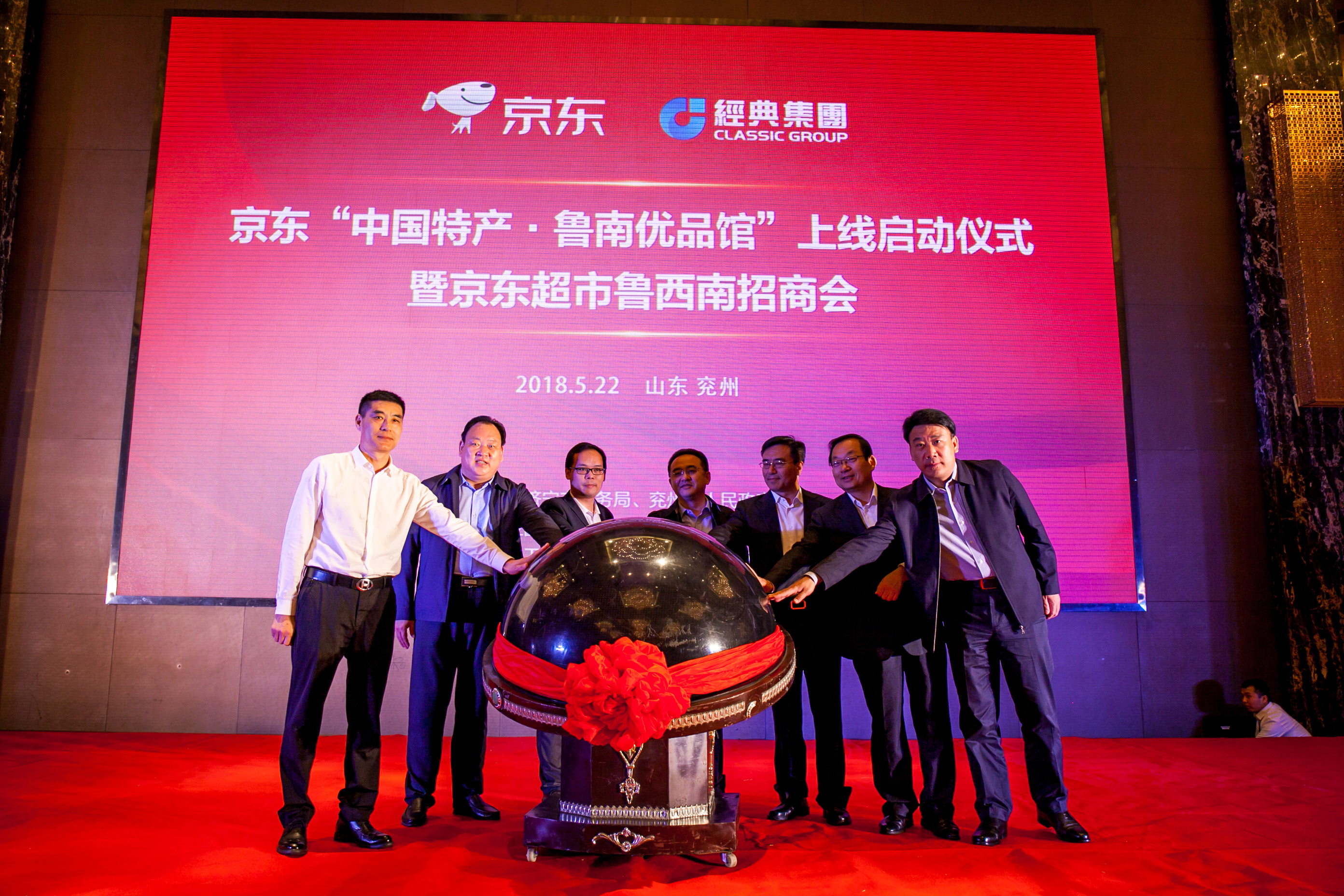5月22日上午,京東“中國特產·魯南優品館”上線啟動儀式暨京東超市魯西南招商會在兗州成功舉辦。濟寧市兗州區委書記王宏偉、濟寧市商務局局長閆百川、京東集團山東大區市場總監王清波、山東經典集團董事長苗樹文分別在儀式上致辭。