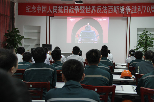 9月3日上午,中共中央、國務院、中央軍委在北京天安門廣場隆重舉行中國人民抗日戰爭暨世界反法西斯戰爭勝利70周年紀念大會和閱兵式。經典集團在生產施工任務重、工期緊的情況下,黨支部、工會精心安排,周密部署,組織職工代表80余人收聽收看紀念大會和閱兵式,并作為企業開展愛國主義教育的一項重要舉措。