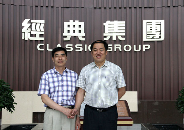 薛教授一行首先參觀了經(jīng)典集團的文化館、項目管理中心、綜合辦公室、職工培訓(xùn)室、愛心超市和閱覽室。苗董事長簡要介紹了經(jīng)典集團的生產(chǎn)經(jīng)營、產(chǎn)學(xué)研合作、技術(shù)創(chuàng)新、文化建設(shè)等有關(guān)情況。薛教授對近年來經(jīng)典集團的快速發(fā)展給予高度評價。