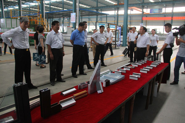 在觀摩會現(xiàn)場,與會領(lǐng)導(dǎo)首先聽取了劉董事長關(guān)于企業(yè)發(fā)展情況的匯報,隨后深入公司年產(chǎn)10萬噸高端鋁型材的生產(chǎn)車間,并現(xiàn)場聽取了項目負(fù)責(zé)人的情 況介紹。通過實地觀摩和聽取匯報,觀摩團(tuán)領(lǐng)導(dǎo)對我公司能夠按照科學(xué)發(fā)展觀和區(qū)委區(qū)政府關(guān)于跨越發(fā)展的總要求,堅持解放思想,抓住機遇,高點定位,高點建設(shè),開拓進(jìn)取,攻堅破難,加快發(fā)展的做法給予充分肯定,并對我公司生產(chǎn)經(jīng)營所取得的成績給予高度評價和贊賞。