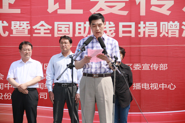 兗州區(qū)委常委、宣傳部長(zhǎng)初建偉,副區(qū)長(zhǎng)李勇,濟(jì)寧市廣播電視臺(tái)副臺(tái)長(zhǎng)馬漢濤,經(jīng)典集團(tuán)董事長(zhǎng)苗樹(shù)文,總經(jīng)理杜福生,濟(jì)寧市廣播電視臺(tái)、兗州區(qū)委宣傳部、殘疾人聯(lián)合會(huì)、志愿者協(xié)會(huì)、廣播電視中心等有關(guān)部門(mén)負(fù)責(zé)人出席了此次助殘活動(dòng)。