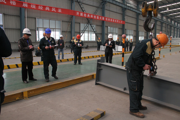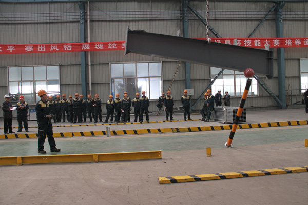 比賽在集團(tuán)公司輕鋼車間進(jìn)行。比賽活動(dòng)將理論學(xué)習(xí)和實(shí)踐操作相結(jié)合,就安全知識(shí)的理解、吊車性能的掌握、實(shí)際吊裝操作三項(xiàng)內(nèi)容進(jìn)行了競(jìng)賽。實(shí)際操作中設(shè)計(jì)了起吊鋼構(gòu)件撞球動(dòng)作,要求在規(guī)定的時(shí)間內(nèi)準(zhǔn)確完成技術(shù)動(dòng)作。經(jīng)過(guò)緊張而激烈的比賽和成績(jī)綜合評(píng)比,烤梁班組的馮勇獲得起重機(jī)技能比賽第一名,門焊機(jī)班組李寶光、烤梁班組的張世凱分別獲得起重機(jī)技能比賽第二名;組立機(jī)班組黃元德、拼裝班組孔祥文、史保健分別獲得起重機(jī)技能比賽第三名,并授予“青年崗位技術(shù)能手”榮譽(yù)稱號(hào);姜?jiǎng)倮?/SPAN>、顧凱、李小明、李慶分別獲得起重機(jī)技能比賽優(yōu)秀獎(jiǎng),并授予“技能操作優(yōu)勝者”榮譽(yù)稱號(hào)。
