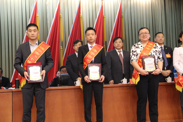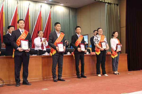 市委領(lǐng)導(dǎo)為周超董事長頒發(fā)獎牌(中間)